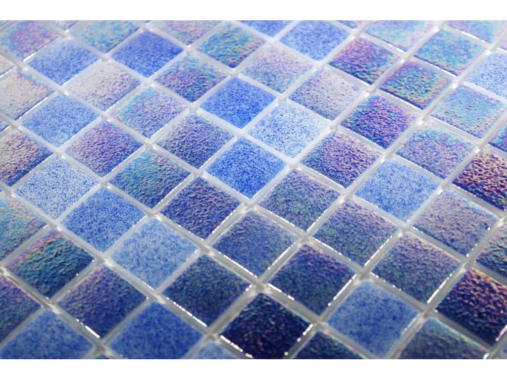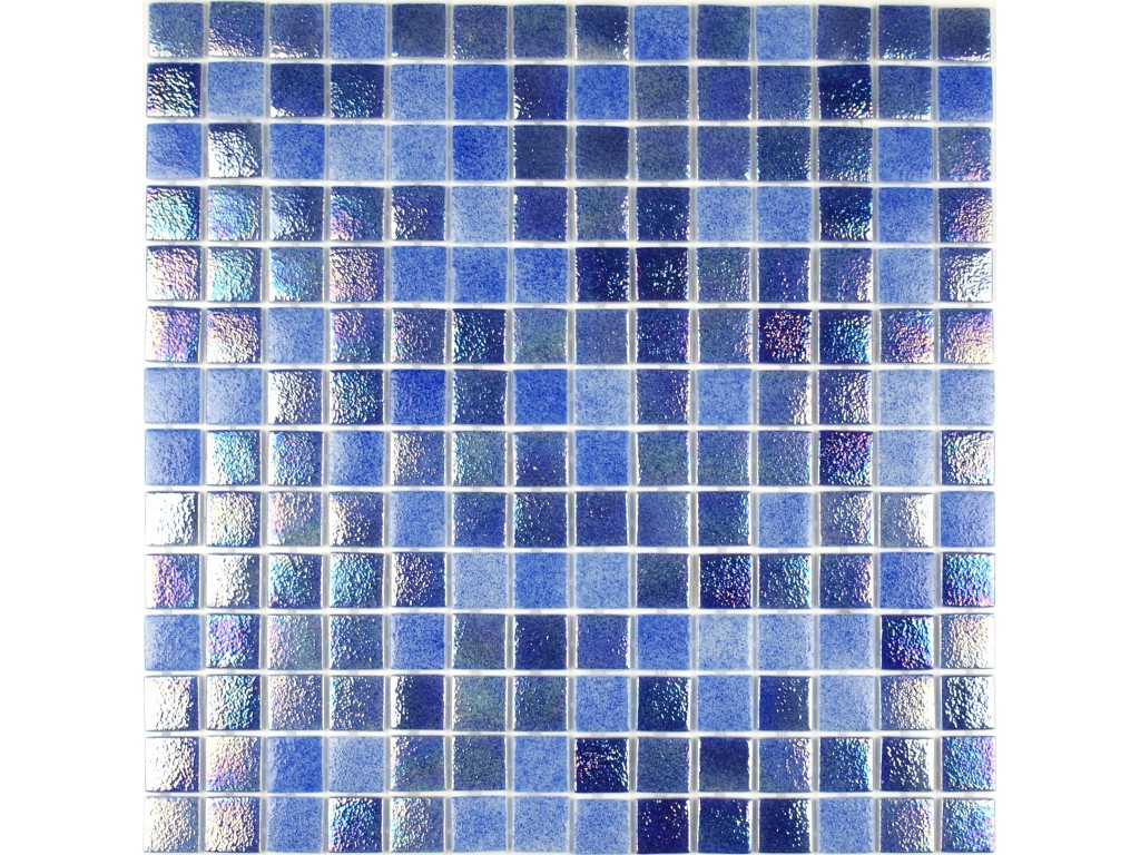 Glass mosaic tile, iridescent effect 23.5 x 23.5 mm, (Menorca)A winning combination of rich blues blended with blue iridescent pieces ensure that Menorca is a favourite.